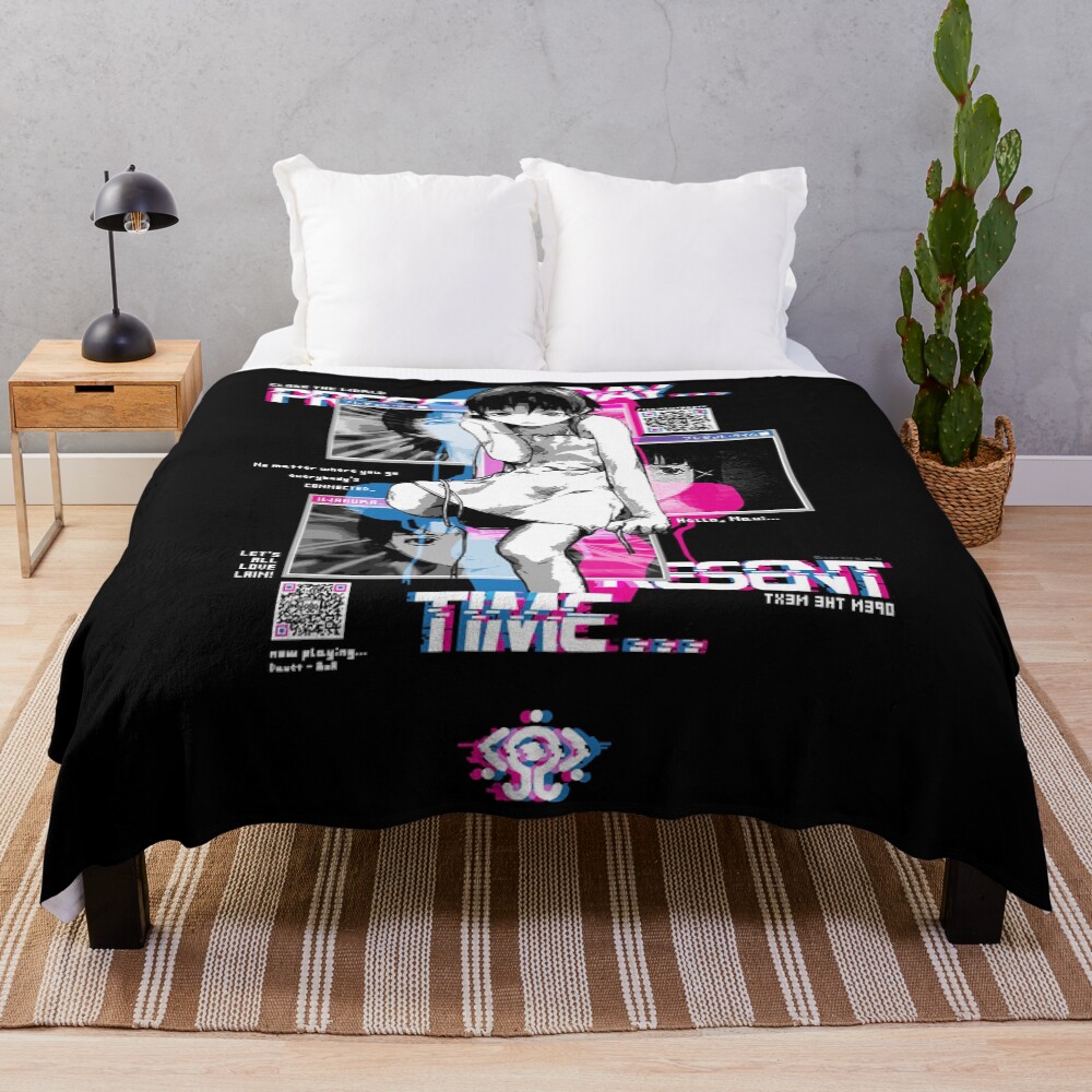 Qr Lain Windows Serial Experiments Lain Anime Art Throw Blanket